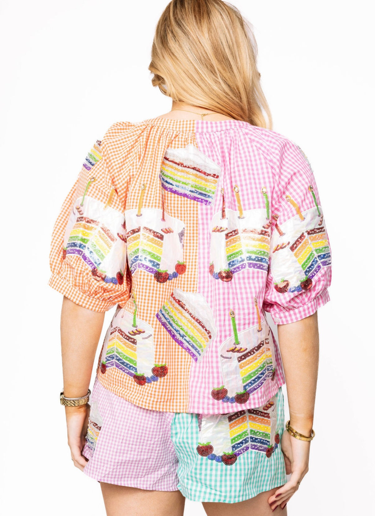 These Queen Of Sparkles color block gingham button-up shorts are your ticket to rainbow-bright fun! Featuring a delightful mix of pink and orange tones in a cheerful gingham pattern, it's like wearing a slice of birthday cake. The charming color block style brings an extra bit of personality and flair, while the breathable cotton fabric keeps you comfy and confident. Whether you're celebrating your birthday or just want to add some sparkle to your everyday style, this shirt delivers instant happiness and undeniable charm!