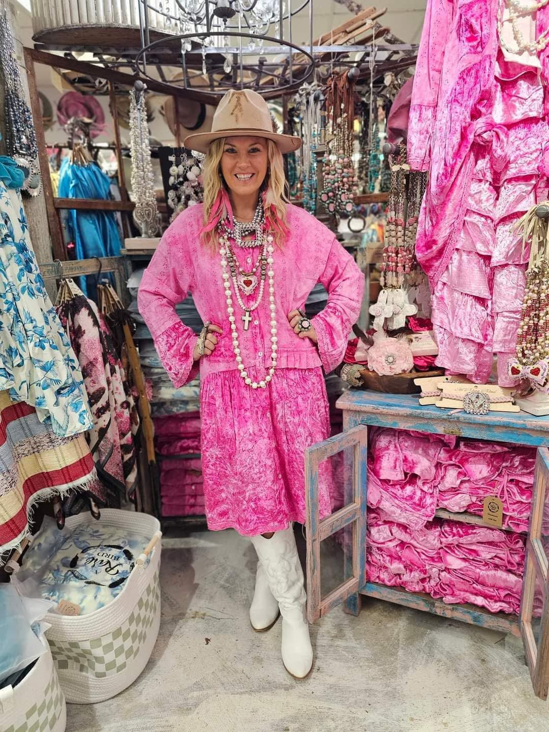 Magenta Velvet and Eyelet Duster