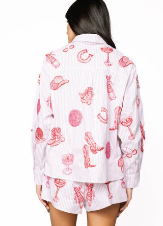 Queen of Sparkle Green and White Stripe Cafe Du Monde Icon Button Up Top