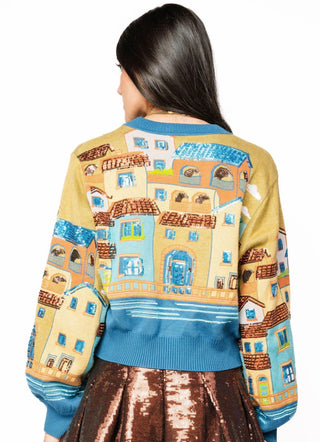 Queen of Sparkles Lavender, Green and Yellow Queen Cake Striped Sweater