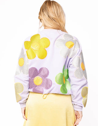 Queen of Sparkles Lavender Mardi Gras Colored Oversized Rhinestone Flowers Sweatshirt