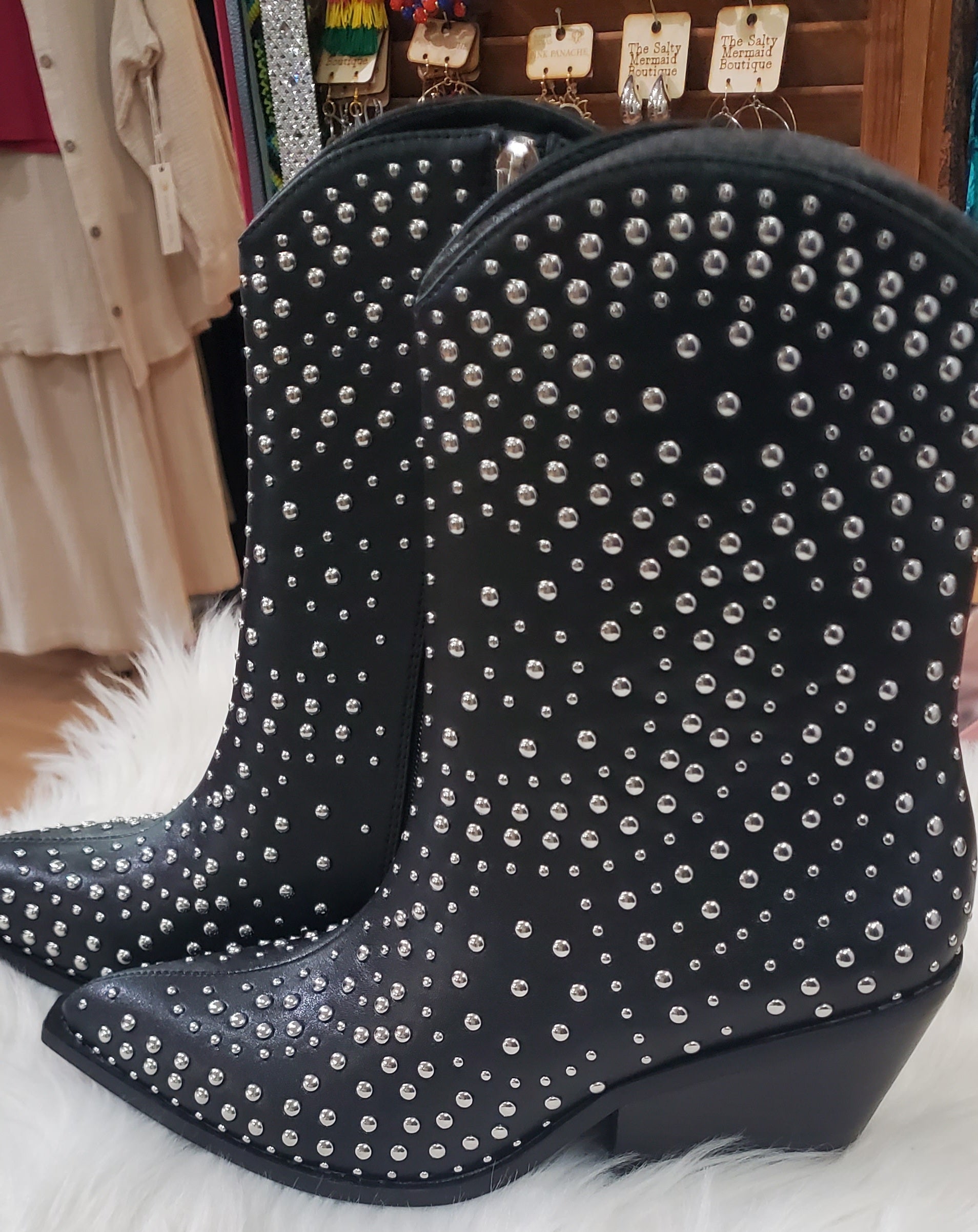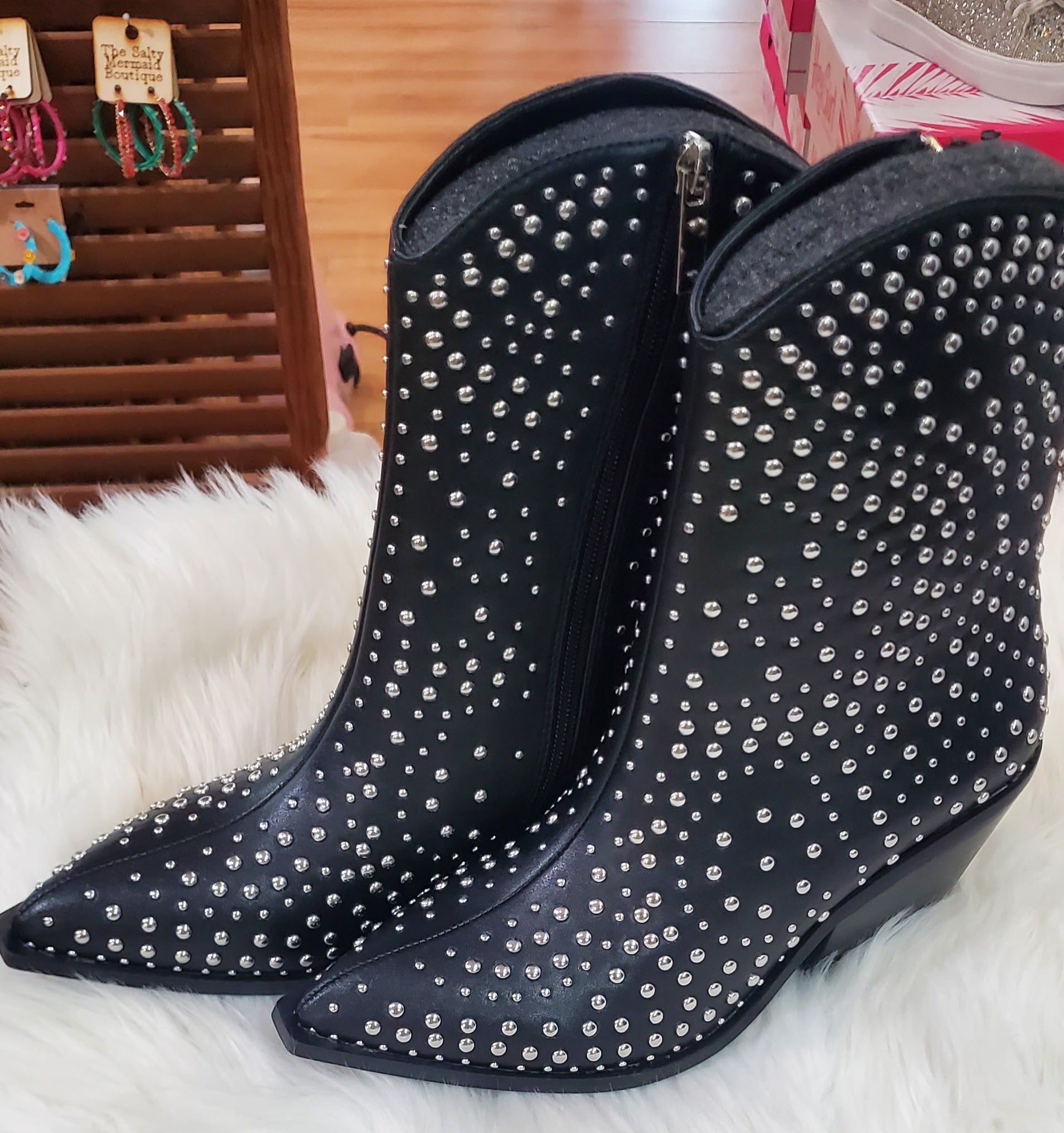 Introducing the quirky and comfortable Corkys Lowlights Ankle Boot Black! These playful boots feature a sleek black design with silver stud detailing, perfect for adding a touch of edge to any outfit. Get ready to rock these boots in comfort all day long.