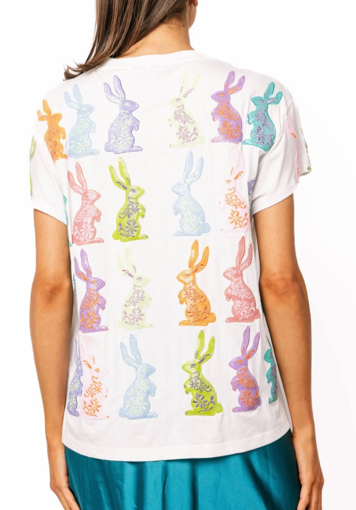 Queen Of Sparkles White Multi Easter Bunny Tee