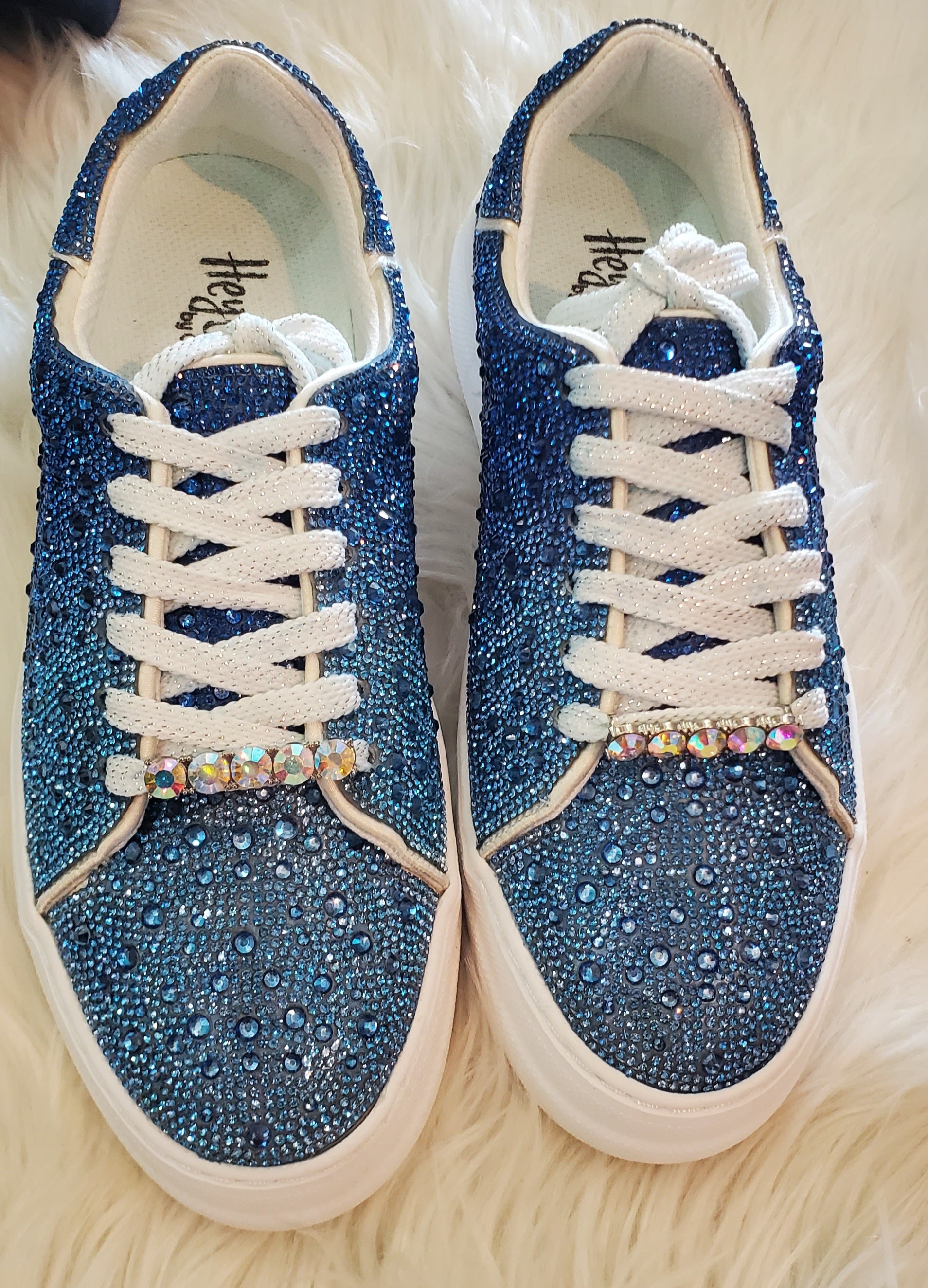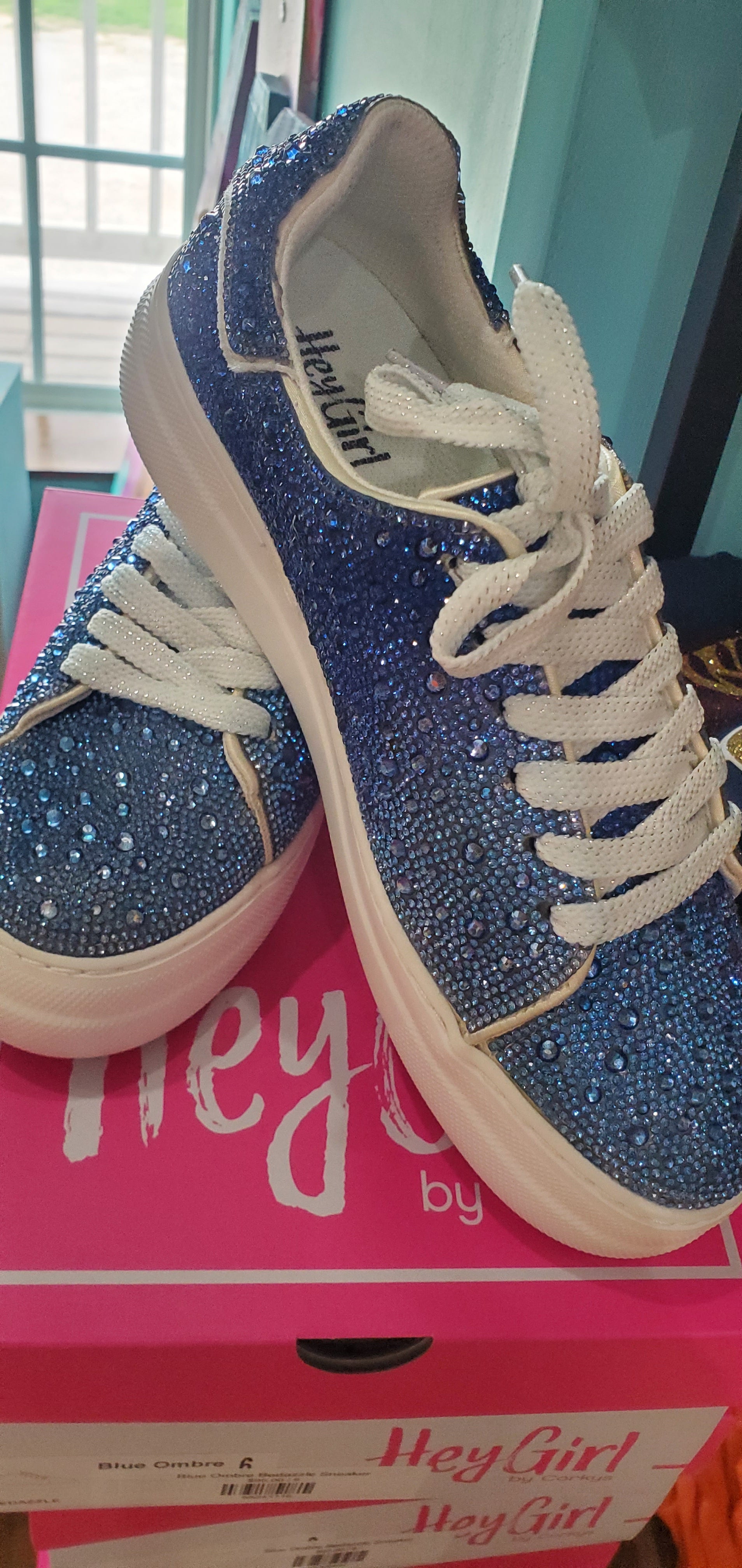 Get ready to dazzle and stand out from the crowd with our Blue Ombre Bedazzle Sneaker from Corkys! The unique blue ombre design and sparkling crystal bedazzle will add a touch of fun and glamour to any outfit. Embrace your fun side and step into these shoes for a playful and stylish look.