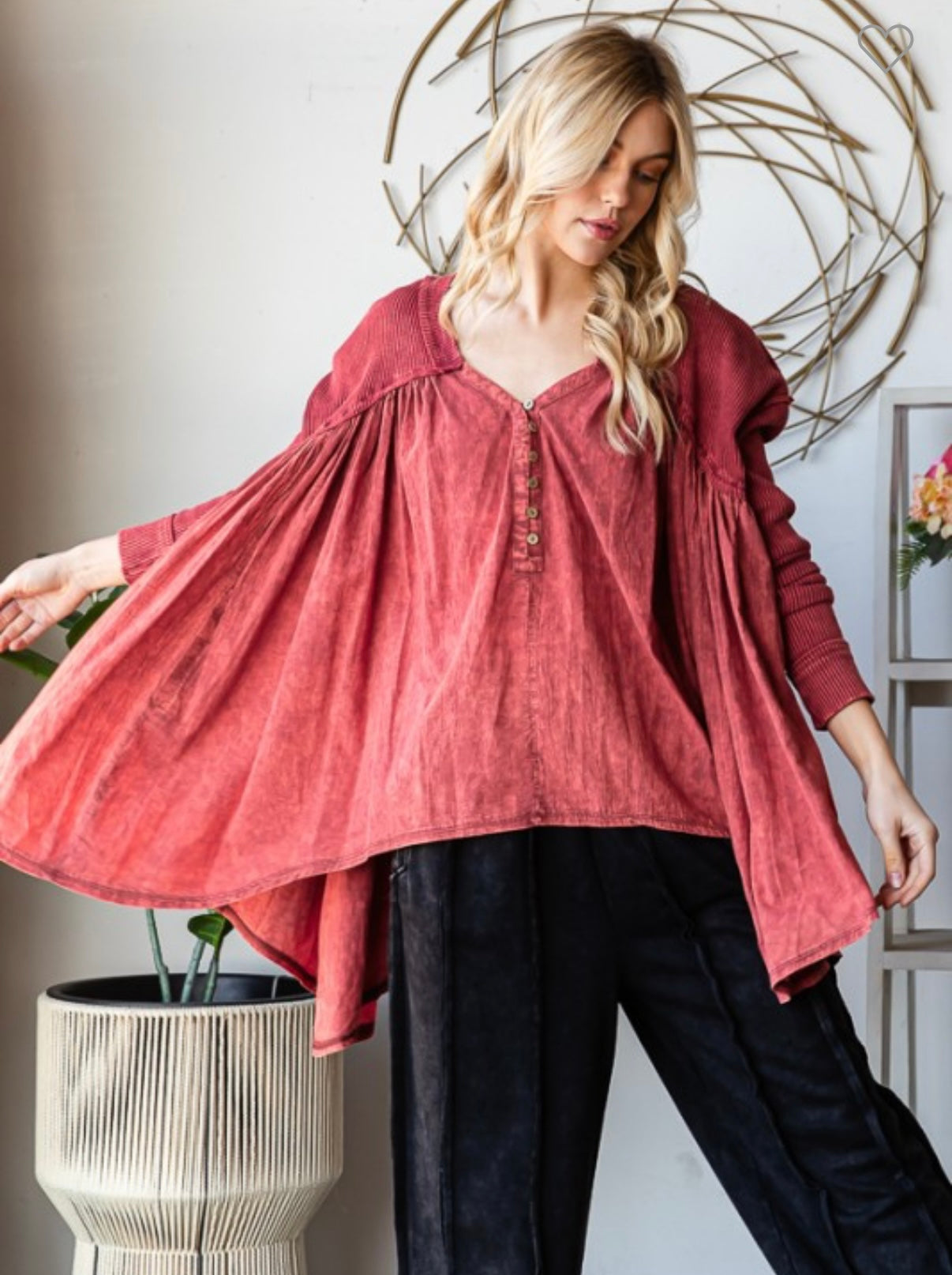 Introducing our Brick Red Long Sleeve Tunic, made with soft cotton. The tunic style features fitted sleeves and an oversized body for a comfortable fit. Perfect for a casual day out or lounging at home.