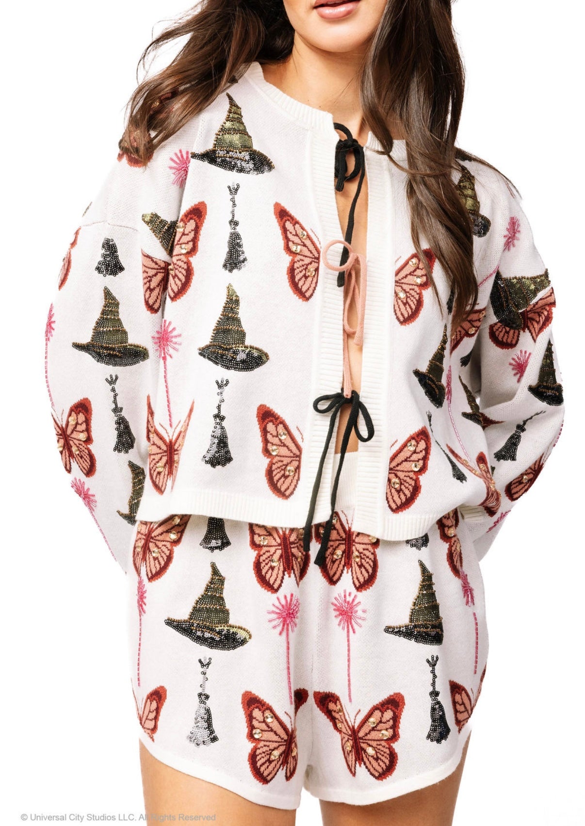 Queen of Sparkles Butterfly and Broomsticks Tie Front Cardigan