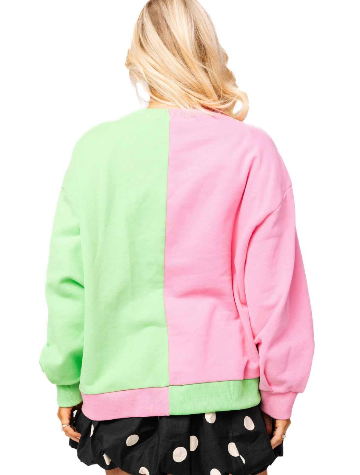 Queen of Sparkles Green and Pink Color Block Wicket Sweatshirt