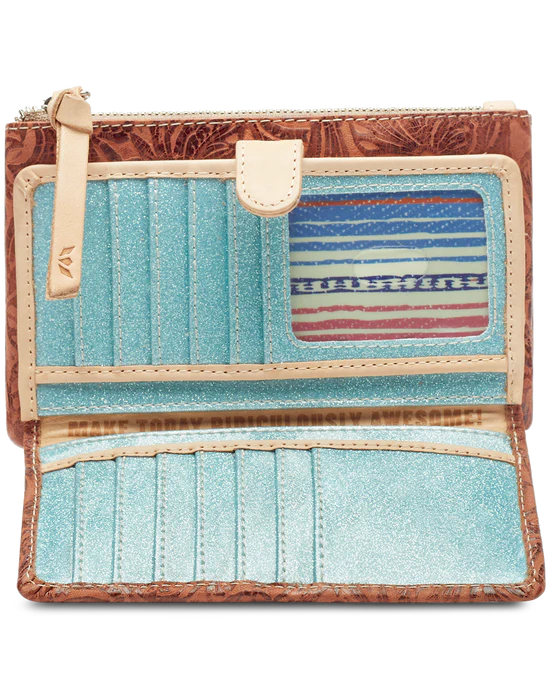 Our Sally Slim Wallet is compact in size, yet complete with all the compartments you need to stay organized! Our Sally tooled leather bifold is secured with a snap tab closure and filled with functional card slots and pockets.