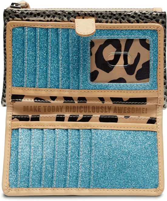 Our Slim Wallet carries cards and cash without weighing you down. Open the snap closure to reveal an ID window pocket, 12 card slots, and 4 slide pocket compartments in this versatile bifold.