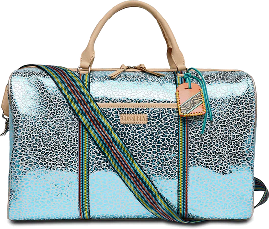 Our largest duffel style, the Weekender, is our go-to for weekend road trips. This duffel is roomy enough for all your essentials and features leather handles, an adjustable webbing strap, two interior pockets, and two exterior pockets. If you’re looking for a TSA carry-on compatible bag, check out the Jetsetter or the Zipper Tote!